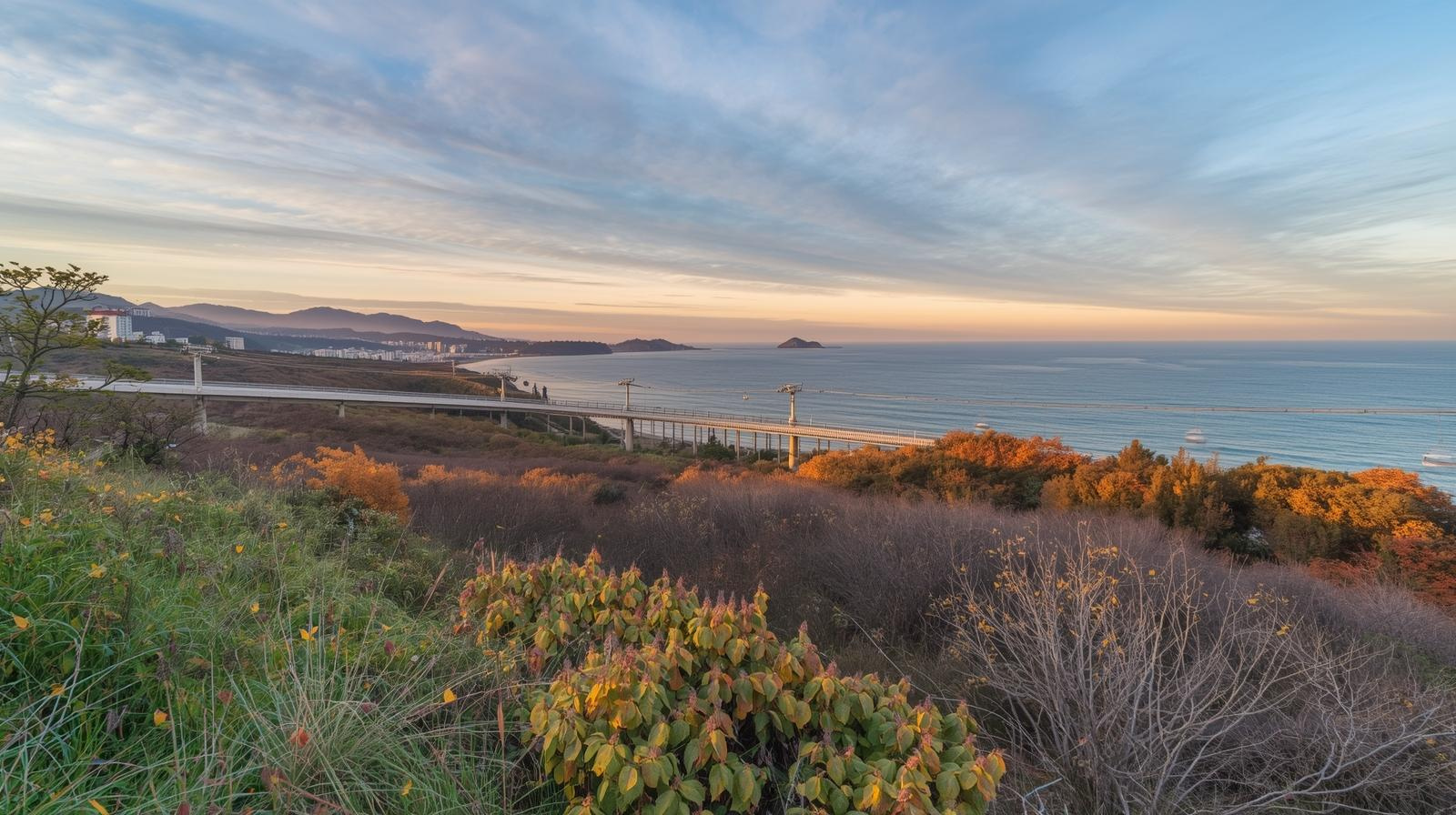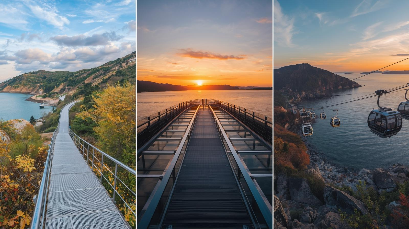 | 송도 구름다리 & 에어크루즈 주변 | 바다 위 스카이워크, 케이블카 전망 | 해질녘 | 1~2시간 | 구름다리→암남공원 소규모 트레킹 연결 |
